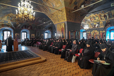 В президиуме присутствовали: митрополит Саратовский и Вольский Лонгин; митрополит Месогейский и Лавреотикийский Николай (Элладская Православная Церковь); епископ Лидский и Сморгонский Порфирий, Председатель Синодального отдела по делам монастырей и монашеству Белорусского Экзархата; куратор – игумения Иулиания (Каледа), Заместитель Председателя Синодального отдела по монастырям и монашеству, настоятельница Зачатьевского ставропигиального женского монастыря Москвы.