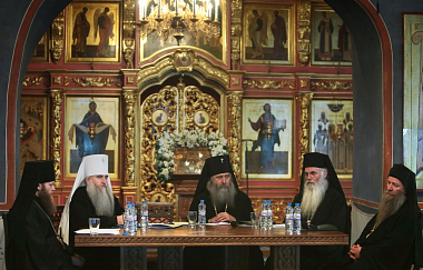В докладе «Монашеское делание как обретение внутреннего Царствия Божия» митрополит Нижегородский и Арзамасский Георгий напомнил, что Царствие Божие есть благодатное состояние души, пребывающей с Богом, ради Которого стоит отказаться от самых дорогих сердцу вещей и привязанностей. Наиболее решительное и определенное отречение предполагается в принятии монашества. Ради самого главного в жизни – Бога – инок жертвует наиболее ценным в глазах людей мира сего – своеволием, плотским наслаждением и материальным богатством. Его Высокопреосвященство подчеркнул, что монашеские обители призваны быть оазисами Царствия Божия на земле. Высокопреосвященнейший митрополит Георгий затронул актуальный вопрос о крайностях монашеской жизни: внутреннего подвига без деятельной любви, или внешней деятельности без сокровенной духовной жизни. «Попытка создать вокруг себя Царствие Божие без создания его прежде в самом себе неизменно обречена на неуспех… В то же время и самонадеянный уход в самого себя в поисках Царствия Божия без прохождения духовного научения под руководством опытного наставника в общежительном монастыре чреват самообольщением», − отметил Его Высокопреосвященство. Помочь избежать этих опасностей при прохождении монашеского поприща может лишь послушание игумену и следование монастырскому уставу. «Устав обители является для иноков благодатной защитой, нарушение же его ведет к риску потерпеть поражение в невидимой брани с врагом», − сказал в заключение своего выступления владыка Георгий.