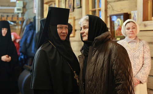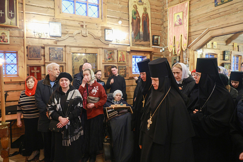 За Литургией молились заместитель председателя Синодального отдела по монастырям и монашеству, настоятельница Зачатьевского ставропигиального женского монастыря Москвы игумения Иулиания (Каледа), руководитель Правового управления Московской Патриархии, настоятельница Алексеевского ставропигиального женского монастыря игумения Ксения (Чернега), настоятельница Никитского женского монастыря Балашихинской епархии игумения Капитолина (Филиппенко), прихожане и паломники.