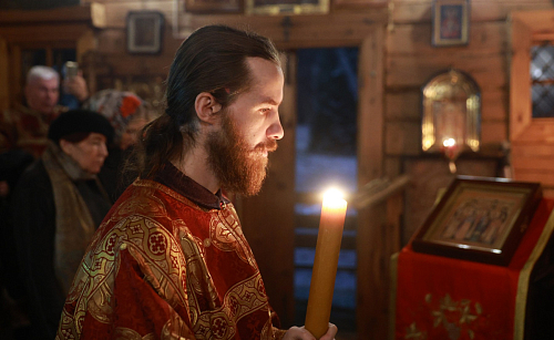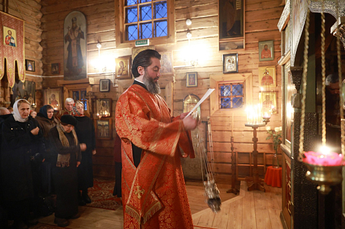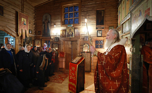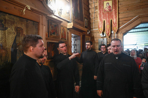 Богослужебные песнопения исполнил знаменный хор храма Черниговской иконы Божией Матери села Санино.