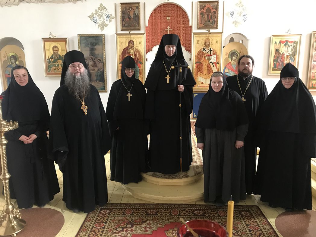 Затем члены комиссии посетили Введено-Оятский женский монастырь. Комиссию встречали игумения Иоанна (Егорова), священник Роман Васильевич Соколов и сестры обители.