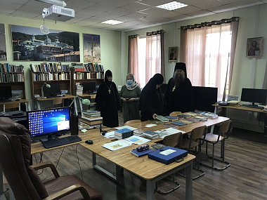 В продолжение работы члены комиссии посетили Духовно-просветительский центр Тихвинской Епархии «Воскресение», где будут проводиться общие лекции для слушателей всех обителей епархии. Гости осмотрели музей, аудитории и мультимедийный класс-библиотеку с виртуальным читальным залом Президентской библиотеки им. Б.Н. Ельцина. Экскурсию провела директор Центра Елена Викторовна Акимова.
