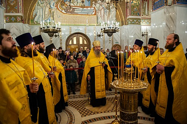 В храме Покрова Пресвятой Богородицы накануне этой памятной даты состоялось торжественное всенощное бдение, которое возглавил пресс-секретарь Синодального отдела по монастырям и монашеству, настоятель Московского подворья Оптиной пустыни архимандрит Мелхиседек.
