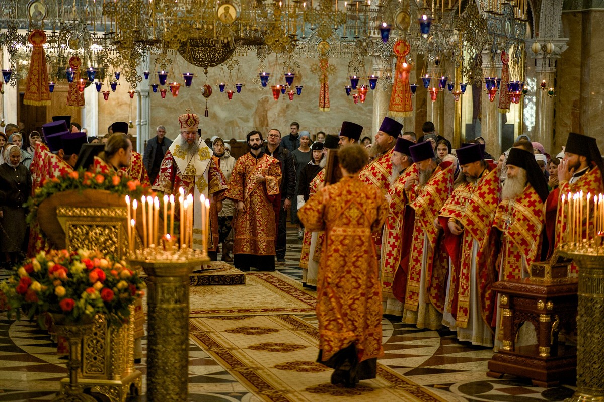 По окончании Литургии был совершен крестный ход вокруг собора. Затем глава Екатеринбургской митрополии произнес проповедь.