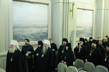 Затем Его Высокопреосвященство передал слово митрополиту Нижегородскому и Арзамасскому Георгию для рассказа о мероприятиях, прошедших в епархиях в рамках регионального этапа Рождественских образовательных чтений, связанных с работой направления «Древние монашеские традиции в условиях современности». Владыка Георгий отметил, что духовная традиция не прерывалась в нашем Отечестве даже в советские годы. Насельники монастырей старшего поколения учились монашеству у тех, кто воспринял его от насельников закрытых в годы гонений на Церковь монастырей, пострадавших за веру подвижников благочестия. Митрополит Георгий констатировал, что наладить внутреннюю жизнь сложнее, чем возвести стены обители. По словам руководителя Комиссии по вопросам организации жизни монастырей и монашества, старцы прежних лет пасомых «учили не уча», самой своей жизнью показывая примеры высокой духовности.