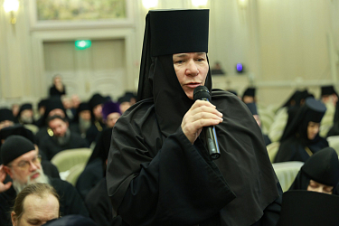 Далее игумения Иулиания пригласила выступить игуменов и игумений с сообщениями о прошедшем в их епархиях региональном этапе Рождественских чтений, частью которого стали монашеские конференции направления «Древние монашеские традиции в условиях современности».