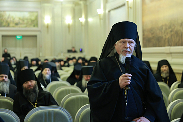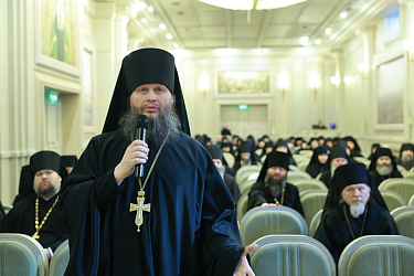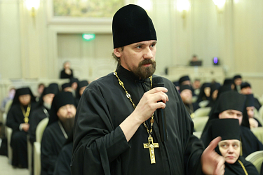 Выступивший с репликой с места игумен Сергий (Куксов), настоятель Вознесенской Давидовой пустыни, благочинный монастырей Подольской епархии рассказал о сложившейся в епархии доброй традиции, когда на таких конференциях монашествующие встречаются с правящим архиереем. Помимо докладов на темы предстоящих Международных Рождественских чтений происходит живая беседа, где архипастырь отвечает на вопросы, как заранее заданные насельниками монастырей, так и возникающие по ходу встречи. На последнем таком собрании, сказал игумен Сергий, присутствовало около шестидесяти монашествующих – от игуменов и игумений до послушников.