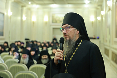 Архимандрит Стефан (Тараканов), являющийся председателем Межведомственной комиссии по вопросам образования монашествующих Русской Православной Церкви, выступил с докладом о работе комиссии в 2025 году и планах на 2026 год.
