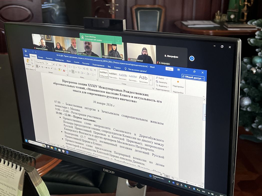 24 декабря 2025 года в режиме видео-конференц-связи митрополит Смоленский и Дорогобужский Исидор, председатель секции, сопредседатель Комиссии по диалогу между Русской Православной Церковью и Коптской Церковью провел заседание рабочей группы по подготовке и проведению в рамках XXXIV Международных Рождественских образовательных чтений специальной секции, посвященной монашескому наследию Египта и актуальности его опыта для современного русского иночества.