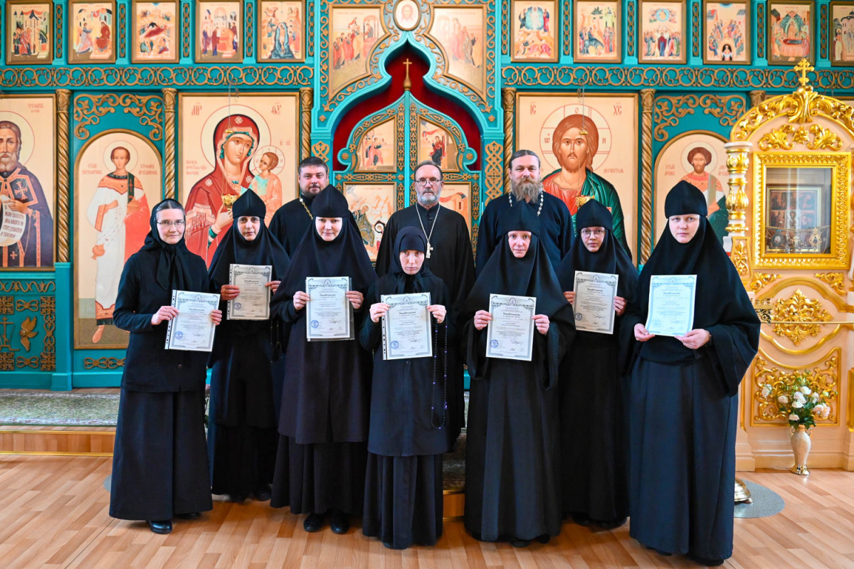 Выпускники курсов – насельницы Преображенского женского монастыря Вятки и Христорождественского женского монастыря Слободского с успехом освоившие ряд обязательных дисциплин, необходимых монашествующим, получили свидетельства об окончании.