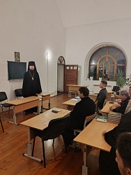Затем прошла встреча со слушателями из Мужского монастыря новомучеников и исповедников Церкви Русской г. Алапаевска, на которой члены комиссии рассказали будущим учащимся о тех дисциплинах, которые они будут изучать.