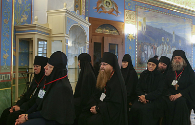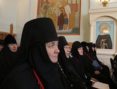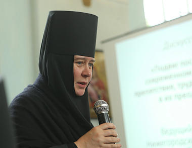 Игумения София (Силина), настоятельница Воскресенского Новодевичьего женского монастыря в Санкт-Петербурге, раскрывая тему доклада «Враги послушания – вопросы: “А почему я?” – “А зачем?” – “А может, лучше по-другому?” – “А если я не смогу?” и прочие: источник их происхождения и методы борьбы», заметила, что желательная часть души стала для современного человека определяющей весь его образ жизни. При высокой культуре интеллекта можно наблюдать крайне низкую культуру сердца. Кроме того, в глубоком кризисе оказался образ отца; нечто подобное можно сказать и об образе матери, и, как ни печально, это ощущается многими как освобождение. Приходя в Церковь, современный человек по сути возвращается к подлинному пониманию основополагающих истин. Наличие дара рассуждения, который невозможно приобрести без чистоты сердечной, трудно ждать от тех, кто идет в монастырь из мира. Вот почему советы исполнять послушание с рассуждением или, выбирая обитель, присмотреться к действиям настоятеля, проверить их соответствие святоотескому преданию вряд ли имеют под собой почву. Борьба за послушание – это борьба с ветхим человеком. И современный монах, вставший на путь послушания, встает на путь мученичества. Но как, по слову священномученика Илариона (Троицкого), архиепископа Верейского, нет христианства без Церкви, так нет и монашества без монастырей – орудия Промысла Божия в приобретении послушания.