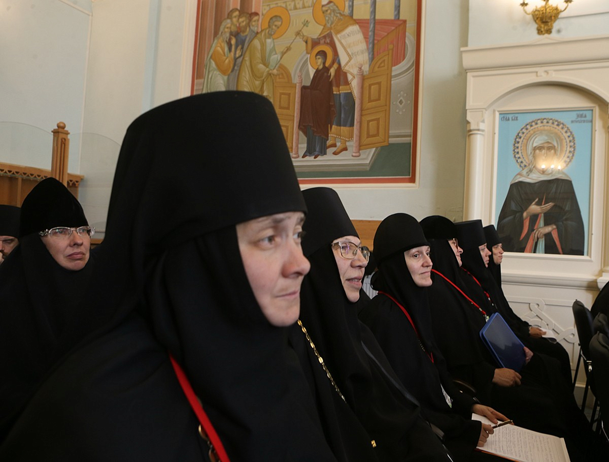 3 июля 2018 года круглый стол «Добродетель послушания в современных монастырях: практические аспекты» продолжил свою работу в Новодевичьем Воскресенском женском монастыре Санкт-Петербурга. В президиуме утреннего заседания секции «Созидание жизни братства в духе послушания» присутствовали: митрополит Нижегородский и Арзамасский Георгий, председатель комиссии Межсоборного присутствия по вопросам организации жизни монастырей и монашества; митрополит Санкт-Петербургский и Ладожский Варсонофий; митрополит Почаевский Владимир; митрополит Саранский и Мордовский Зиновий; епископ Лидский и Сморгонский Порфирий, председатель Синодального отдела по делам монастырей и монашеству Белорусской Православной Церкви (Белорусского экзархата Московского Патриархата); епископ Касимовский и Сасовский Дионисий.