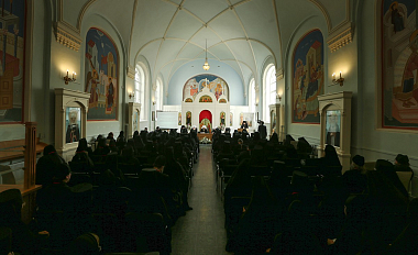 Далее игумения Домника сказала о необходимости учиться не только внешнему послушанию, удерживаясь от греха на деле, не обнаруживая свои страсти, но и, главное, одновременно с этим приступать к внутреннему подвигу, изгоняя противление, печаль и огорчение из сердца и ума. И содействие в этом монаху может оказать только молитва, с которой он будет обращаться непосредственно к Богу, прося у Него помощи и укрепления.