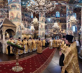 Богослужебные песнопения исполнил хор Донского монастыря Москвы.