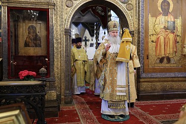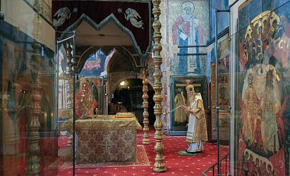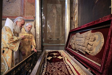 По окончании Литургии митрополит Феогност совершил славление у раки с мощами святителя Ионы, митрополита Московского и всея России, чудотворца.