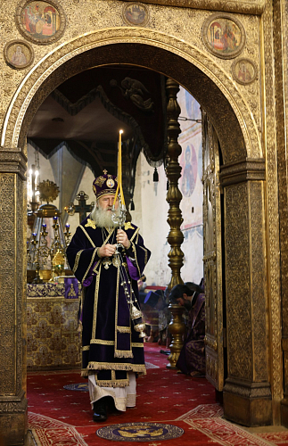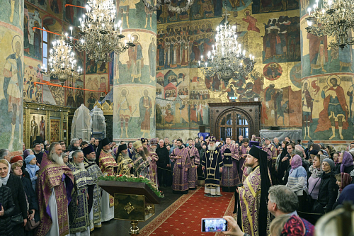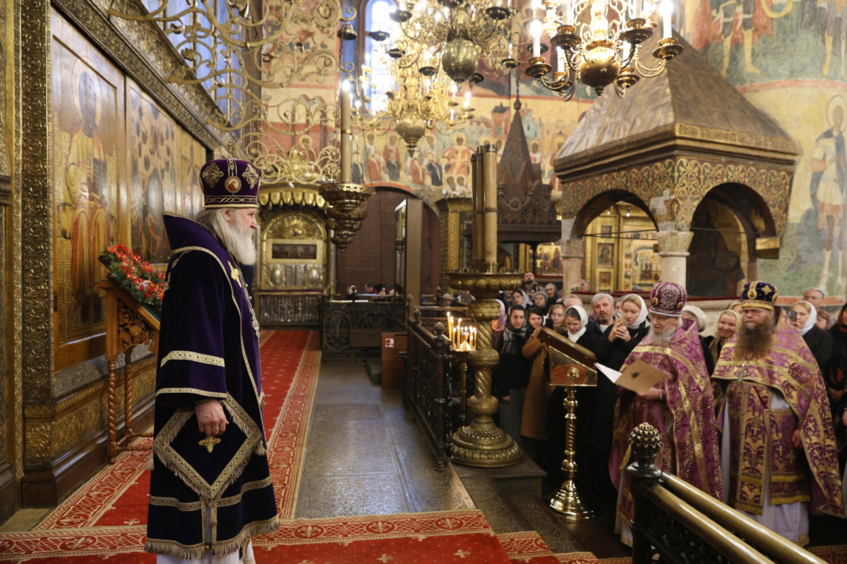 27 марта 2025 года, в день памяти святителя Феогноста, митрополита Киевского и всея России (1353), председатель Синодального отдела по монастырям и монашеству, наместник Донского ставропигиального мужского монастыря митрополит Каширский Феогност совершил утреню и Литургию Преждеосвященных Даров в Патриаршем Успенском соборе Московского Кремля.