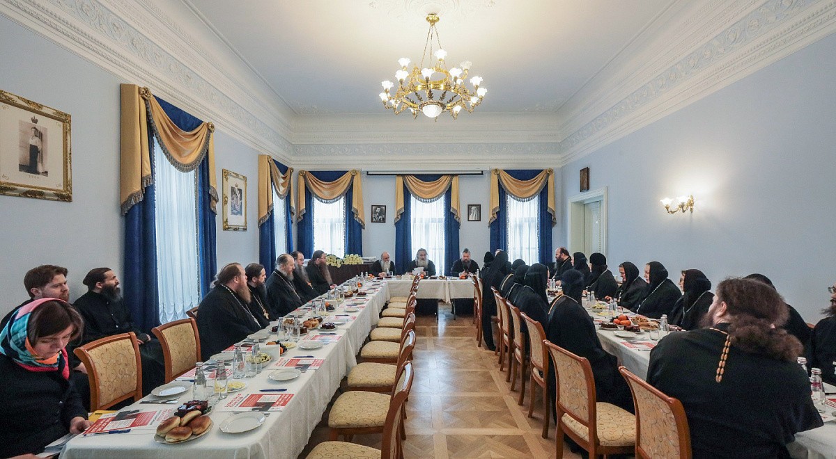 20 марта 2020 года, в пятницу 3-й седмицы Великого поста, по благословению Святейшего Патриарха Московского и всея Руси Кирилла в ставропигиальном женском монастыре Марфо-Мариинская обитель милосердия состоялось собрание наместников и игумений ставропигиальных монастырей.