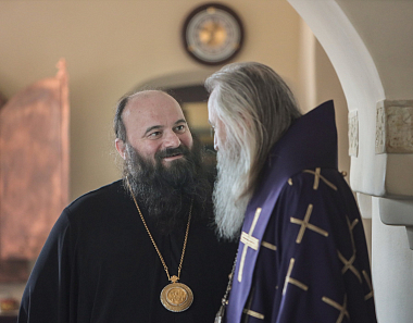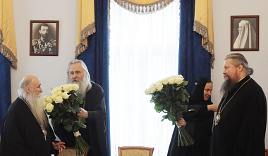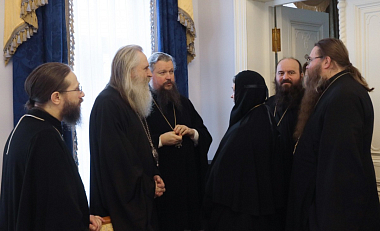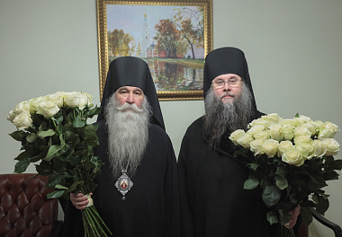 Его Высокопреосвященство поздравил с предстоящим тезоименитством епископа Дмитровского Феофилакта и наместника Воскресенского Ново-Иерусалимского ставропигиального мужского монастыря архимандрита Феофилакта (Безукладникова) накануне дня памяти их небесного покровителя. Именинникам от Синодального отдела по монастырям и монашеству были вручены цветы и подарки.