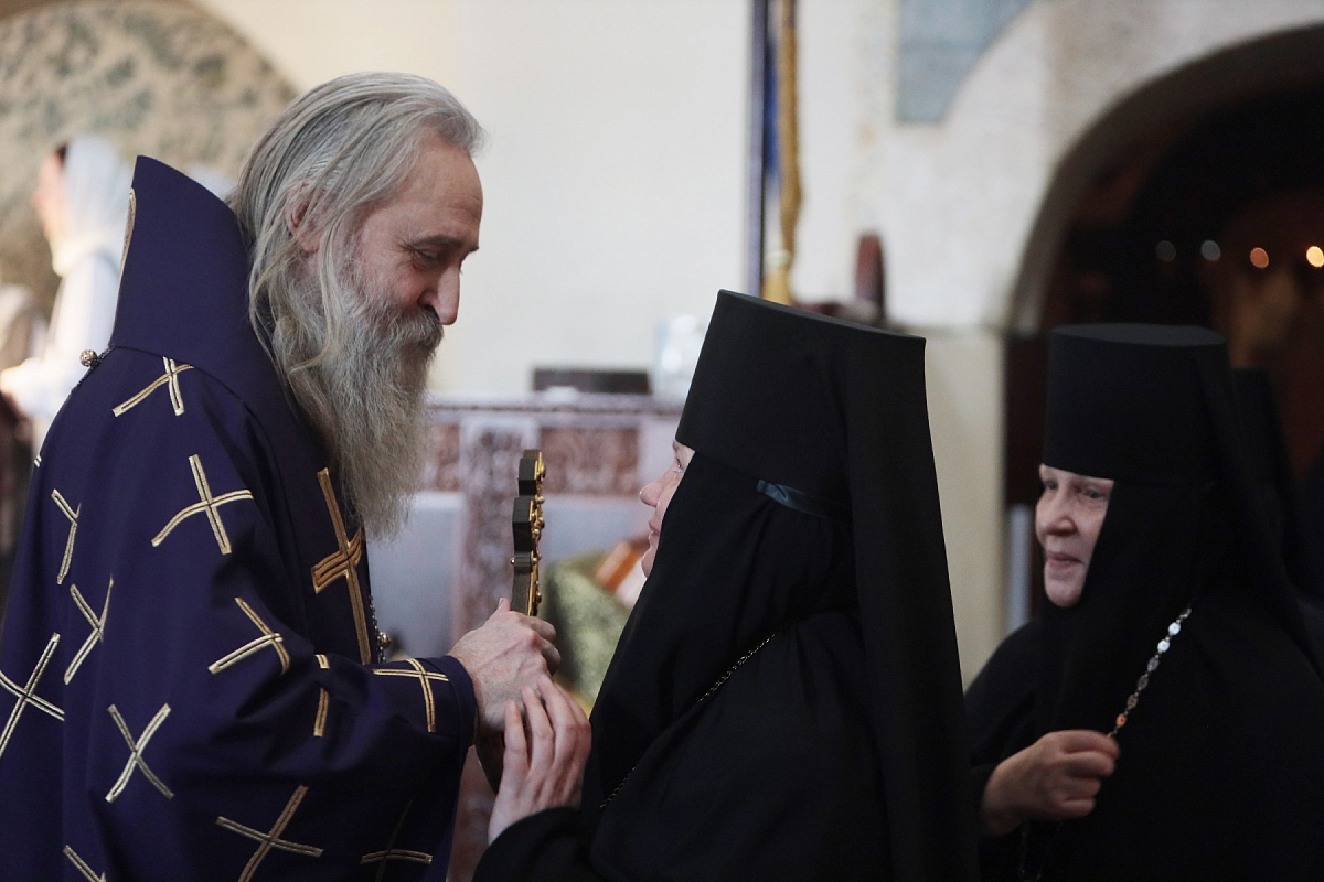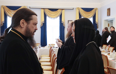 По окончании богослужения открыл работу собрания председатель Синодального отдела по монастырям и монашеству архиепископ Каширский Феогност.