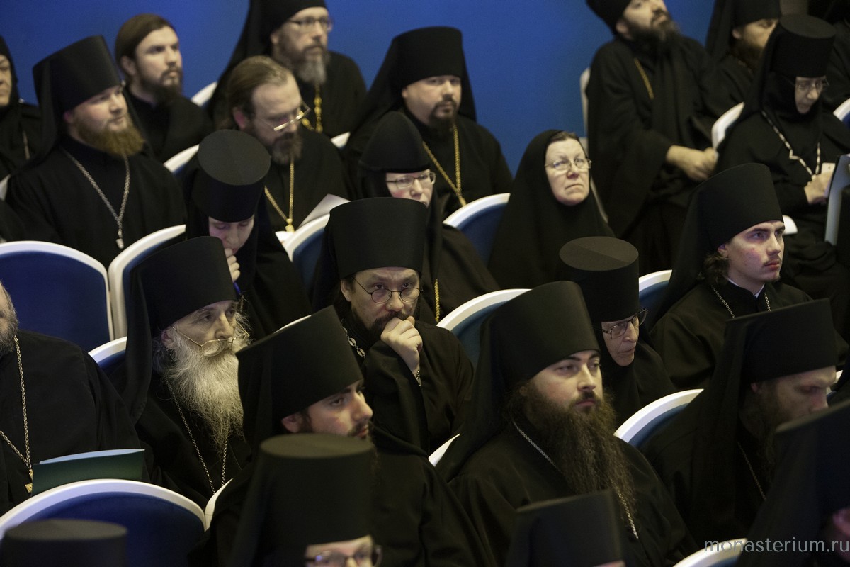 В президиуме конференции, проходящей в Центре оперного пения им. Галины Вишневской, присутствовали: митрополит Саранский и Мордовский Зиновий; митрополит Астраханский и Камызякский Никон; епископ Туапсинский Дионисий, викарий Екатеринодарской епархии; епископ Лидский и Сморгонский Порфирий, председатель Синодального отдела по делам монастырей и монашеству Белорусского экзархата; игумения Иулиания (Каледа), заместитель председателя Синодального отдела по монастырям и монашеству, настоятельница Зачатьевского ставропигиального женского монастыря Москвы.