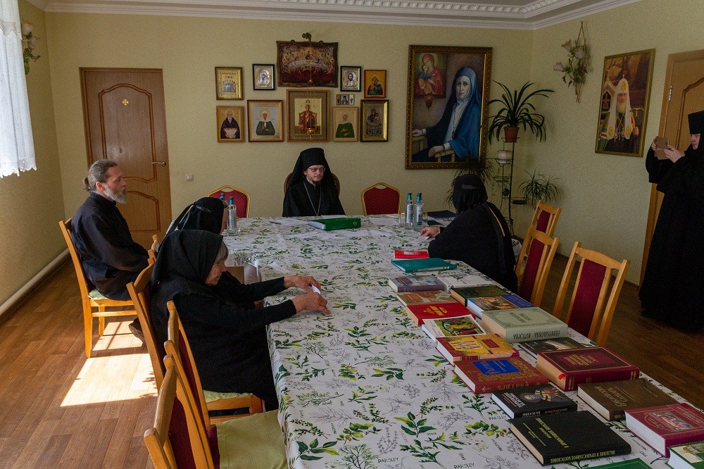 На основной учебной площадке – в Свято-Успенском мужском монастыре г. Орла члены комиссии проверили учебно-методическую документацию курсов и ознакомились с библиотечным фондом курсов для монашествующих.