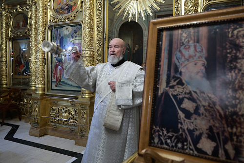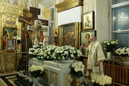 По окончании Литургии митрополит Феогност отслужил панихиду у места погребения Святейшего Патриарха Алексия II.