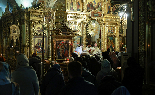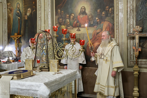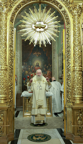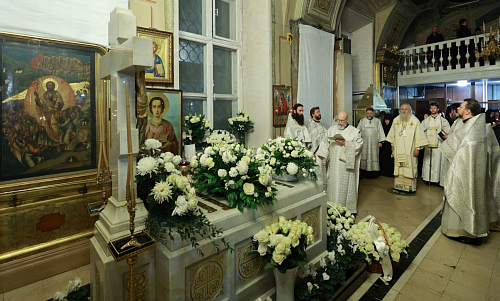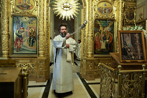 Его Высокопреосвященству сослужили настоятель храмов Патриаршего подворья Николо-Перервинского монастыря г. Москвы протоиерей Владимир Чувикин, насельник Свято-Троицкой Сергиевой лавры архимандрит Агафодор (Маркевич), клирики Елоховского собора и приходов Москвы.