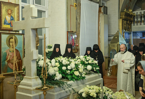 За Литургией молились заместитель председателя Синодального отдела по монастырям и монашеству, настоятельница Зачатьевского ставропигиального женского монастыря игумения Иулиания (Каледа), настоятельница Богородице-Рождественского ставропигиального женского монастыря игумения Викторина (Перминова), и.о. настоятельницы подворья Пюхтицкого Успенского ставропигиального женского монастыря в Москве монахиня Даниила (Яматина), настоятельница Никитского женского монастыря в деревне Бывалино Московской области игумения Капитолина (Филиппенко), прихожане.