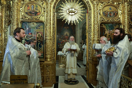 Богослужебные песнопения исполнил хор Донского ставропигиального монастыря.