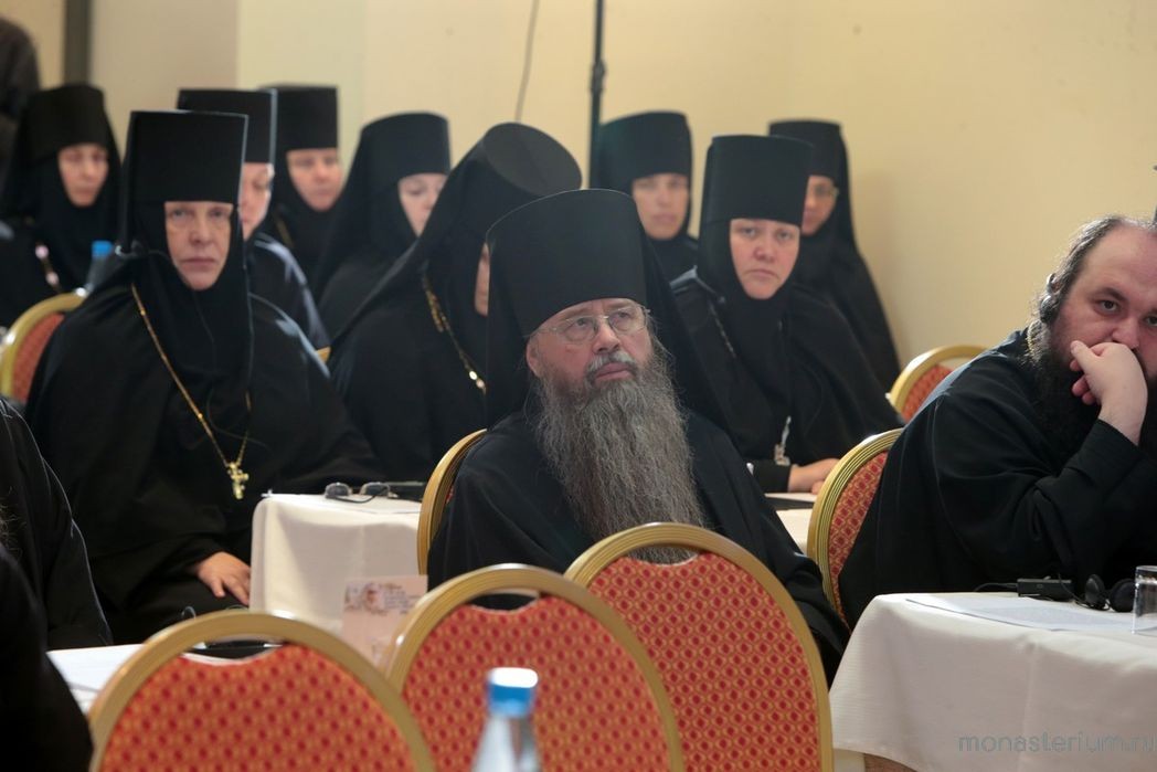 Митрополит Святогорский Арсений, наместник Свято-Успенской Святогорской Лавры, представил на конференции доклад «Современные монастыри Русской Церкви – опыт возрождения», в начале которого подчеркнул, что в течение 70-летнего периода гонений на Церковь в Советском союзе власть с особой жестокостью искореняла монашество, являвшее непоколебимый пример верности святому каноническому Православию. Владыка Арсений осветил деятельность тайных монашеских общин, окормлявшихся старцами-духовниками и объединявших насельников разогнанных обителей, тайно постриженных монашествующих и немалое число мирян, которые также воспитывались в этих общинах в строгом молитвенном духе, воспринимая лучшие дореволюционные церковные традиции. Эта во многом скрытая жизнь подвижников благочестия, а также духовный пример мучеников и исповедников веры оказали огромное влияние на подъем и возрождение Русской Церкви в 1990-е и последующие годы, явились закваской для современных поколений монашествующих.