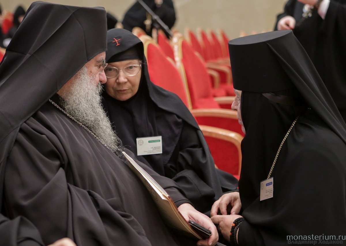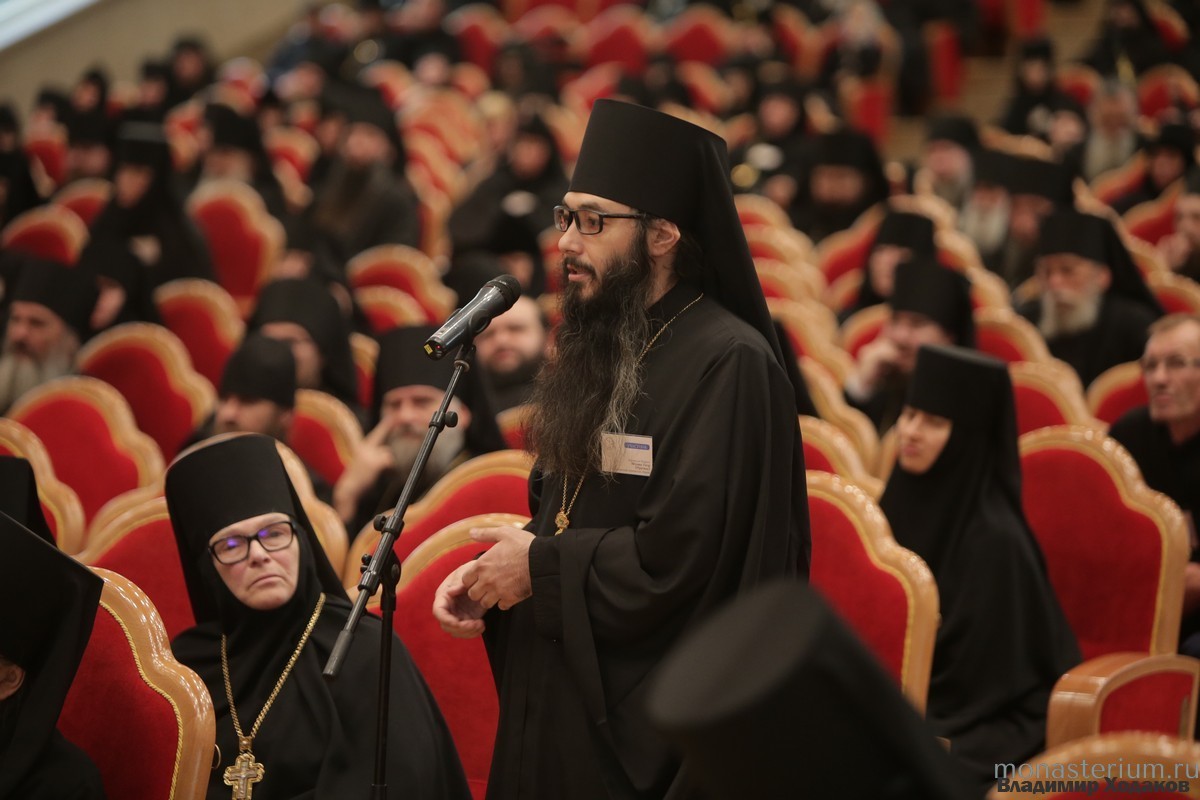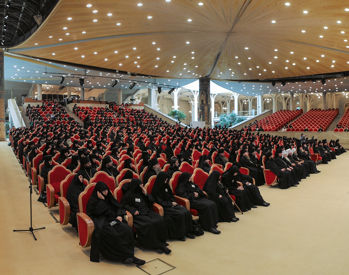 Предваряя свое выступление, Его Святейшество выразил удовлетворение тем, что подобные собрания становятся важной частью церковной жизни и оказывают влияние на развитие монашества. Предстоятель Церкви особо отметил, что духовная жизнь человека несет в себе огромный потенциал воздействия на окружающий мир. Соприкасаясь с силой молитвы и духовного подвига монашествующих, люди меняют свое отношение к Богу, Церкви и часто меняют свою жизнь. Мир смотрит на монастыри с надеждой, желая увидеть в монахах живое свидетельство о Христе.