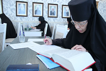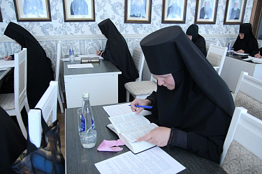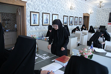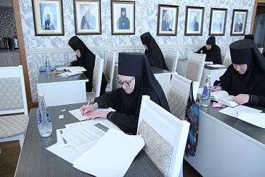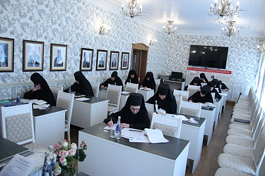 После беседы с руководством состоялась итоговая аттестация слушательниц по дисциплине курсов «Священное Писание Нового Завета». Зачет успешно сдали все 13 слушательниц первого потока, обучавшихся на курсах в 2022–2025 учебных годах, насельницы Спасского женского монастыря города Ульяновска.