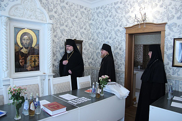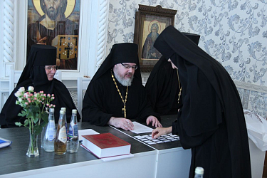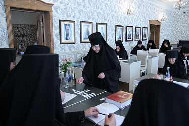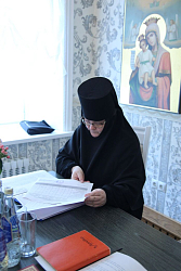 Свою работу комиссия начала с проверки документации курсов и встречи с их руководством. Во встрече участвовали руководитель курсов базовой подготовки в области богословия для монашествующих Симбирской епархии – настоятельница Спасского женского монастыря города Ульяновска игумения Сергия (Вотрина), а также секретарь и преподаватель курсов иеромонах Савва (Марков). Во время беседы члены аккредитационной комиссии обсудили с присутствующими насущные вопросы духовного образования монашествующих в Симбирской епархии.