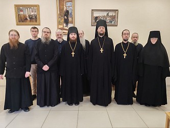 Вечером того же дня члены комиссии встретились с митрополитом Екатеринбургским и Верхотурским Евгением и обсудили насущные вопросы духовного образования монашествующих на Среднем Урале. Гости вручили митрополиту Евгению учебно-методические комплексы дисциплин базовой части курсов, изданные в виде приложения к журналу Синодального отдела по монастырям и монашеству «Монастырский вестник».