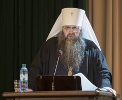 Архиепископ Пятигорский и Черкесский Феофилакт в своем выступлении «Монашеские традиции в годы гонений на Церковь в XX веке и их значение в новейшей истории монашества» продолжил тему исследования профессора М.В. Бибикова о преемственности афонской традиции в практике существования русских монастырей. Докладчик рассказал об обителях Северного Кавказа – Александро-Афонской Зеленчукской пустыни и Успенском Второ-Афонском Бештаугорском монастыре Пятигорской епархии, которые были основаны афонитами, и об их насельниках. Бештаугорский монастырь, просветительский центр Кавказских Минеральных Вод, в годы богоборчества стал хранителем православия. Братия открывала тайные скиты, чтобы укреплять веру и воспитывать кадры для борьбы с безбожием. Устав и традиция в скитах стали любящими отцом и матерью, воспитывающими свое чадо для единственной цели – открыть, воссоздать и прославить в нем образ Божий. Аскетический подвиг насельников монастырей, в годы гонений сохранивших монашеский дух, по мнению владыки, роднит их с подвижниками древности и вдохновляет подражать примеру предшественников.