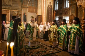 Его Высокопреосвященству сослужили: благочинный Иверского благочиния Москвы протоиерей Геннадий Нефедов; настоятель храма прпп. Сергия и Германа Московского подворья Валаамского монастыря игумен Иосиф (Крюков); насельники подворья в священном сане.