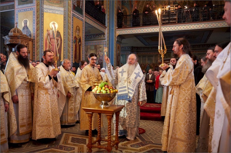 В завершение праздничного богослужения игумен Валаамской обители епископ Троицкий Панкратий совершил освящение плодов нового урожая.