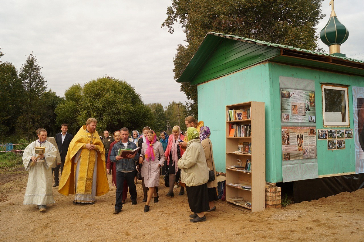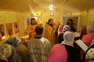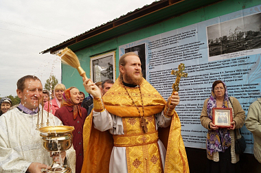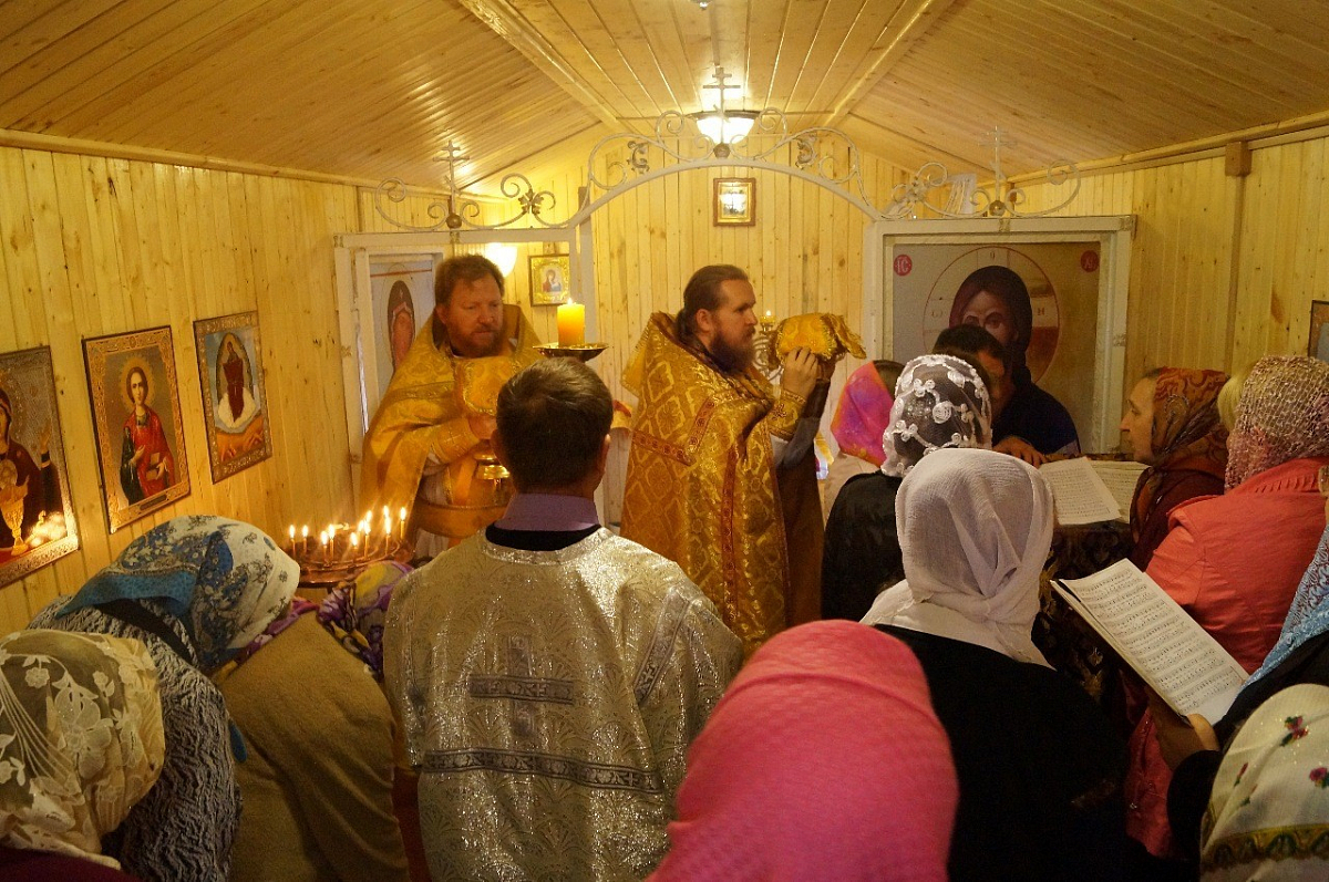 По окончании Литургии был совершен крестный ход вокруг вновь созданного храма. Протоиерей Михаил произнес проповедь, в которой выразил радость о том, что настало, наконец, время, когда «собирание камней», «разбросанных» в прежние годы, приносит плоды, когда в людях пробуждается тяга к чистому, светлому, доброму, когда любовь и единство, высшее воплощение которых в тайне Святой Троицы, перестают быть для людей, сопричастных этой Тайне, отвлеченными словами. Он подчеркнул, что, несмотря на простоту обстановки, помещение, в котором совершалось богослужение, уже отнюдь не простой вагончик-бытовка, а настоящий храм, где возносится молитва, совершаются Таинства и присутствует благодать Божия. Он призвал всегда быть готовыми откликнуться на призыв Божий, потому что только в отверстое сердце входит Господь. Поблагодарив гостей праздника за их усердие к храму, преодолевшее путы повседневной житейской суеты, отец Михаил вспомнил и вдохновляющие примеры благочестия, свойственного русским людям, когда, например, один из богатейших людей своего времени известный предприниматель и меценат П.М. Третьяков имел постоянное место в храме, где от его истовой коленнопреклоненной молитвы остались отпечатки на каменном полу.