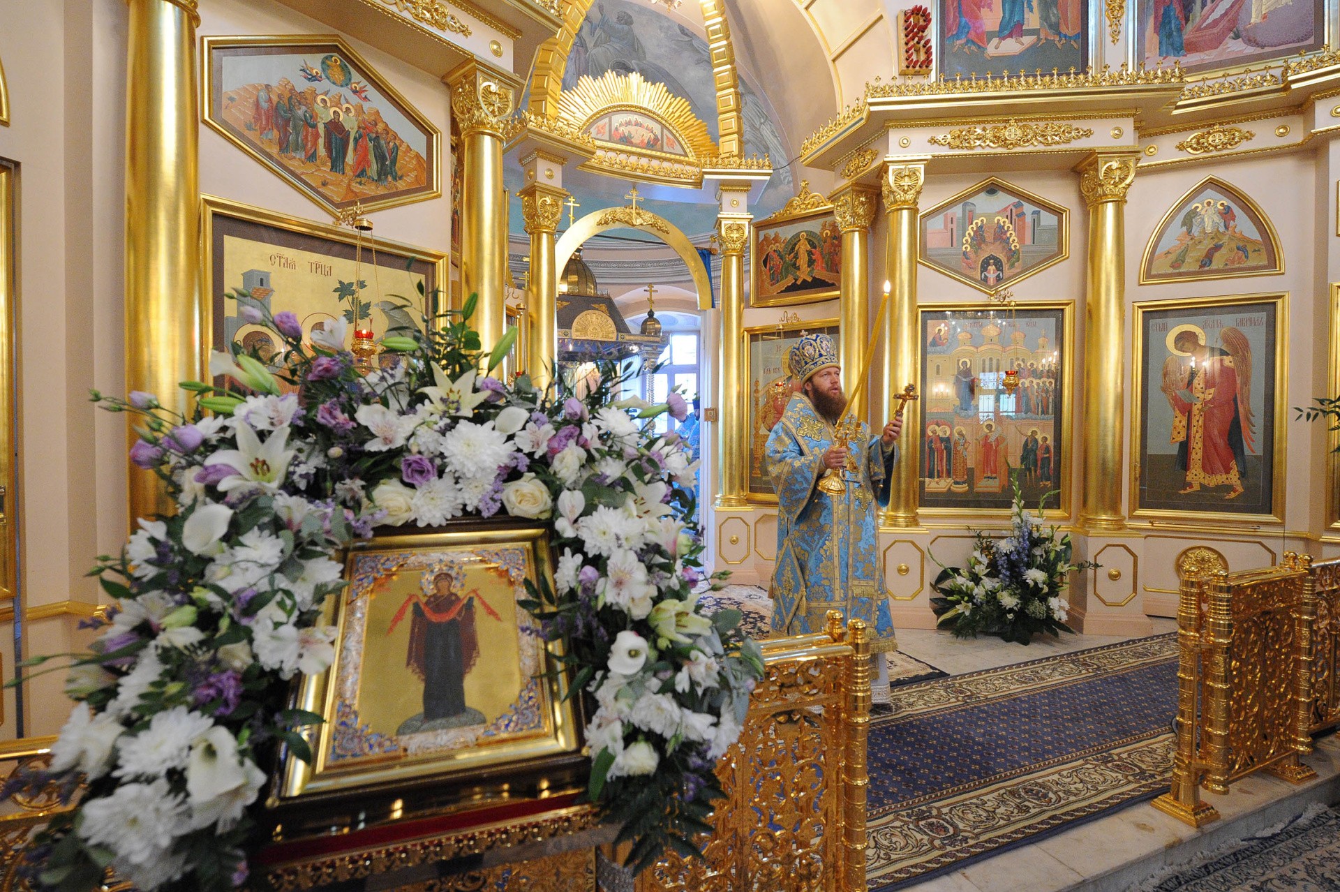 14 октября, в праздник Покрова Пресвятой Владычицы нашей Богородицы и Приснодевы Марии, по благословению Святейшего Патриарха Московского и всея Руси Кирилла наместник Новоспасского ставропигиального мужского монастыря епископ Воскресенский Савва совершил Божественную литургию в Покровском ставропигиальном женском монастыре Москвы.