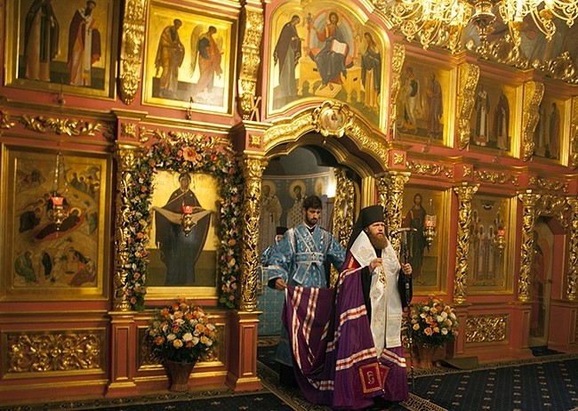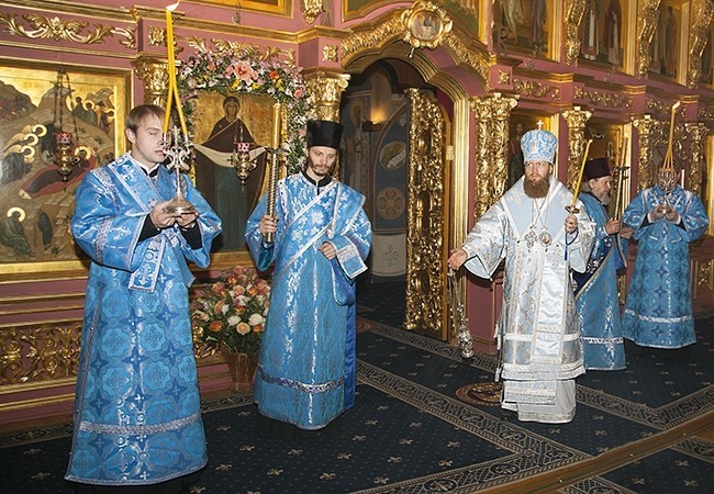 13 октября, накануне празднования Покрова Пресвятой Владычицы нашей Богородицы и Приснодевы Марии, наместник Новоспасского ставропигиального мужского монастыря, викарий Святейшего Патриарха Московского и всея Руси епископ Воскресенский Савва совершил Всенощное бдение в храме Покрова Божией Матери Новоспасской обители.
