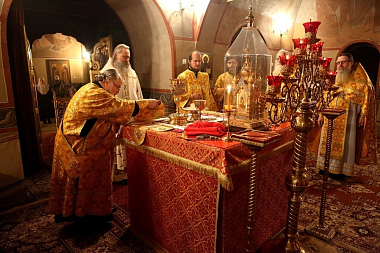 21 октября, в день памяти прп. Пелагии, Председатель Синодального отдела по монастырям и монашеству архиепископ Сергиево-Посадский Феогност совершил Божественную литургию в Даниловом ставропигиальном мужском монастыре Москвы.