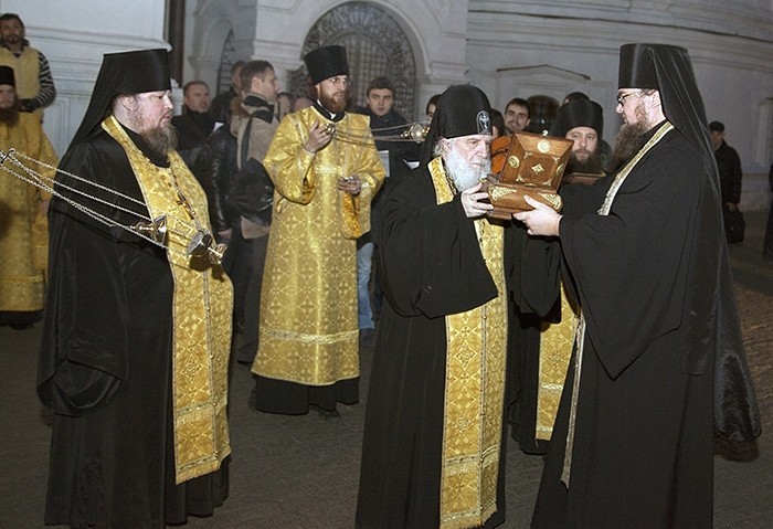 Вечером 22 ноября, накануне Недели 24-й по Пятидесятнице, перед началом Всенощного бдения в Новоспасский ставропигиальный мужской монастырь Москвы по благословению Святейшего Патриарха Московского и всея Руси Кирилла из Спасо-Яковлевского Димитриева монастыря города Ростова Великого были доставлены ковчеги с частицами мощей святых праведных Богоотец Иоакима и Анны и святителя Димитрия, митрополита Ростовского.