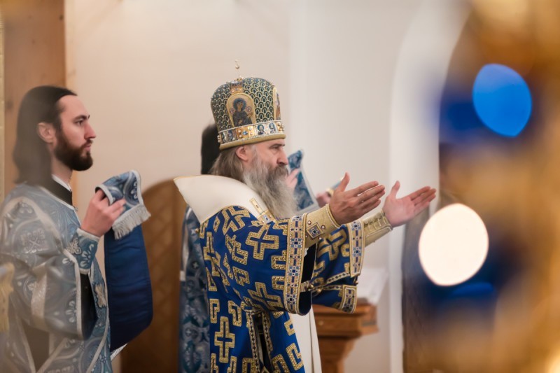 По окончании богослужения архиепископ Феогност передал всем собравшимся благословение Святейшего Патриарха Московского и всея Руси Кирилла, поздравил Заместителя Председателя Синодального отдела по монастырям и монашеству, настоятельницу Зачатьевского ставропигиального женского монастыря игумению Иулианию (Каледу), сестер обители и паломников с престольным праздником и обратился к молящимся с архипастырским словом: