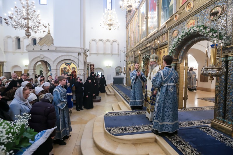 За праздничным богослужением молились: настоятельница Богородице-Рождественского ставропигиального женского монастыря Москвы игумения Викторина (Перминова); настоятельница Аносина Борисоглебского ставропигиального женского монастыря игумения Мария (Солодовникова); настоятельница ставропигиального женского монастыря Марфо-Мариинская обитель милосердия игумения Елизавета (Позднякова).