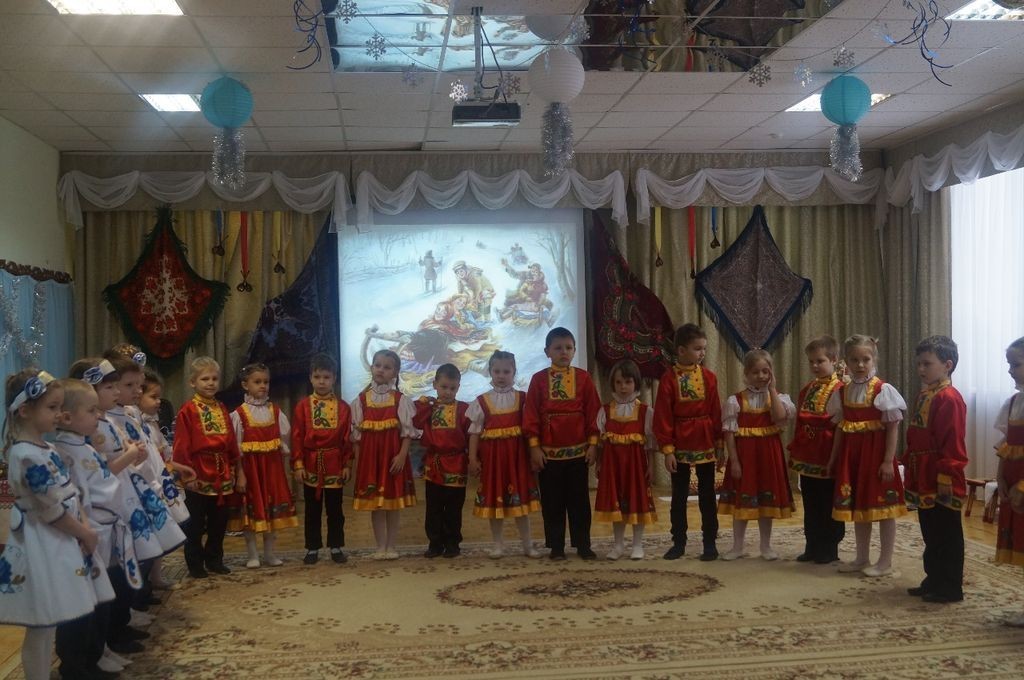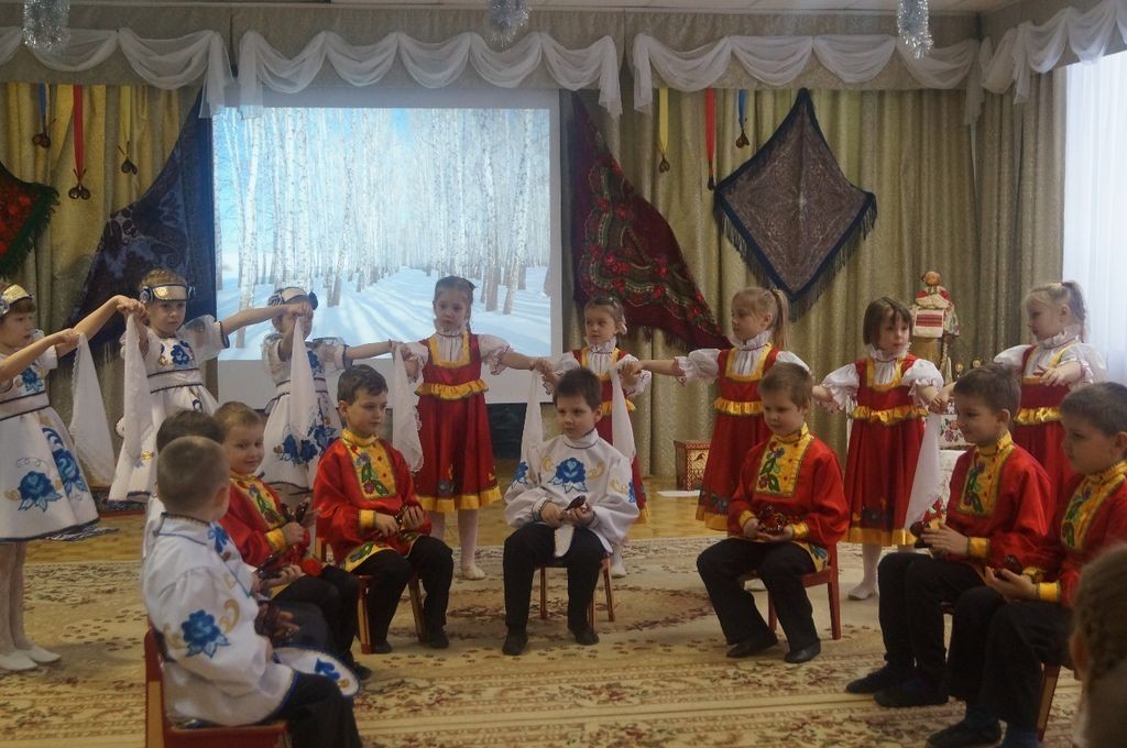 В начале мероприятия ребята в русских народных костюмах читали стихотворения, танцевали и рассказывали зрителям о традициях русского народа.