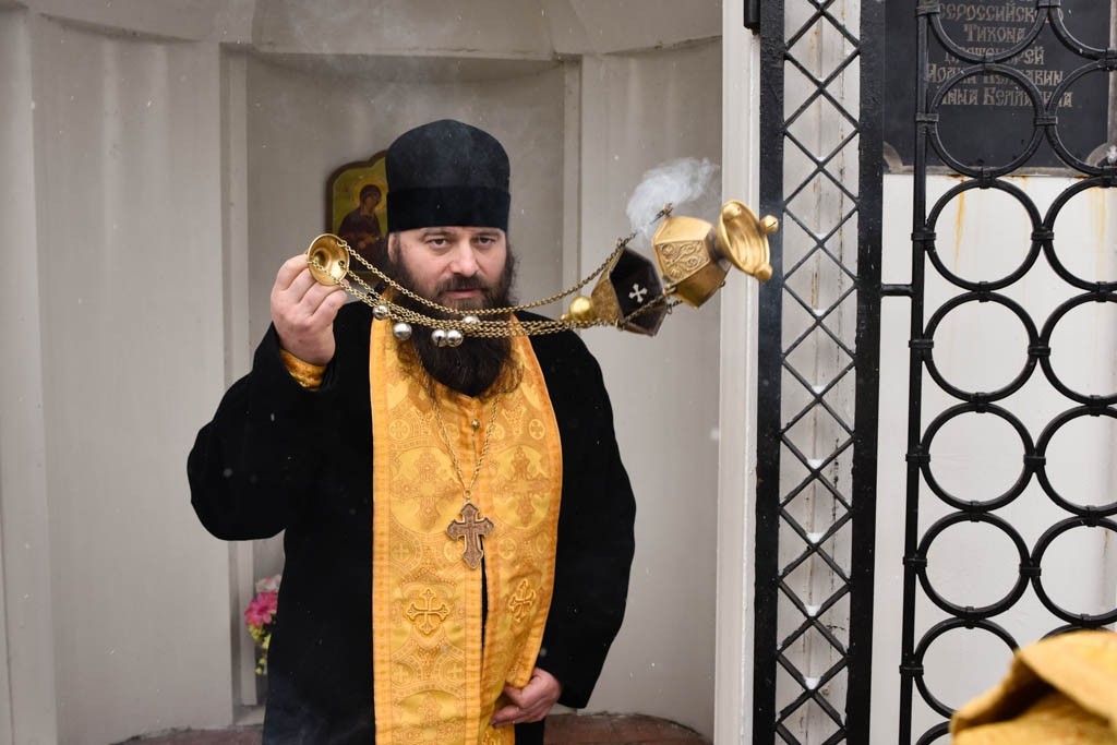 В храме Воскресения Господня, в котором был крещен будущий святитель, делегация Донского монастыря приняла участие в общей молитве за Божественной литургией, которую возглавил епископ Великолукский и Невельский Сергий. Ему сослужили: игумен Парамон, наместник Донского монастыря с братией; игумен Савватий, благочинный Великолукского округа, настоятель Свято-Вознесенского кафедрального собора г. Великие Луки, а также представители местного духовенства.