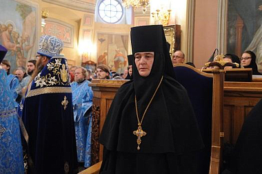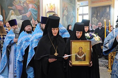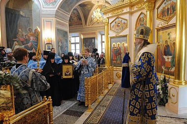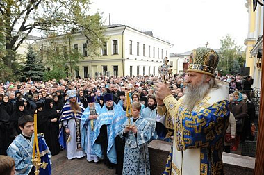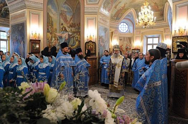 Праздничную Божественную литургию в Покровском храме обители в этот день возглавил Председатель Синодального отдела по монастырям и монашеству, наместник Свято-Троицкой Сергиевой лавры архиепископ Сергиево-Посадский Феогност.