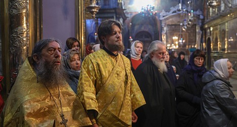 Богослужебные песнопения исполнил хор Троице-Сергиевой лавры.