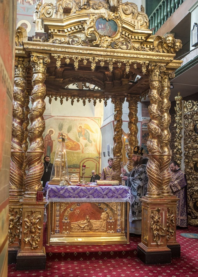 Его Высокопреосвященству сослужили: епископ Шуйский и Тейковский Никон; наместник Донской обители игумен Парамон (Голубка); наместники, братия и духовенство ставропигиальных монастырей.